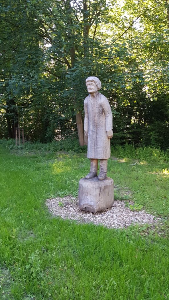 Thomas Hecht hat sich bei dieser Figur für eine abstrakte Umsetzung entschieden. Er folgte der vorgegebenen Maserung des Holzes und entwickelte eine dynamische Skulptur, die von jeder Seite anders aussieht. Dadurch wird die Vielschichtigkeit eines Charakters offenbar und es bleibt dem Betrachter überlassen, das Kunstwerk zu entschlüsseln.